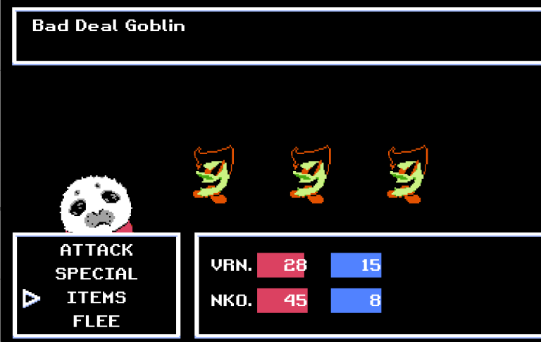 The turn-based battle system was designed from the ground up, inspired by classic RPGs like Dragon Quest and MOTHER- it improves upon its predecessor with more detailed status effects, using an elemental weakness/resistance system for all characters, and a more dynamic system allowing for enemies and allies to be summoned in and knocked out without skipping their turns.